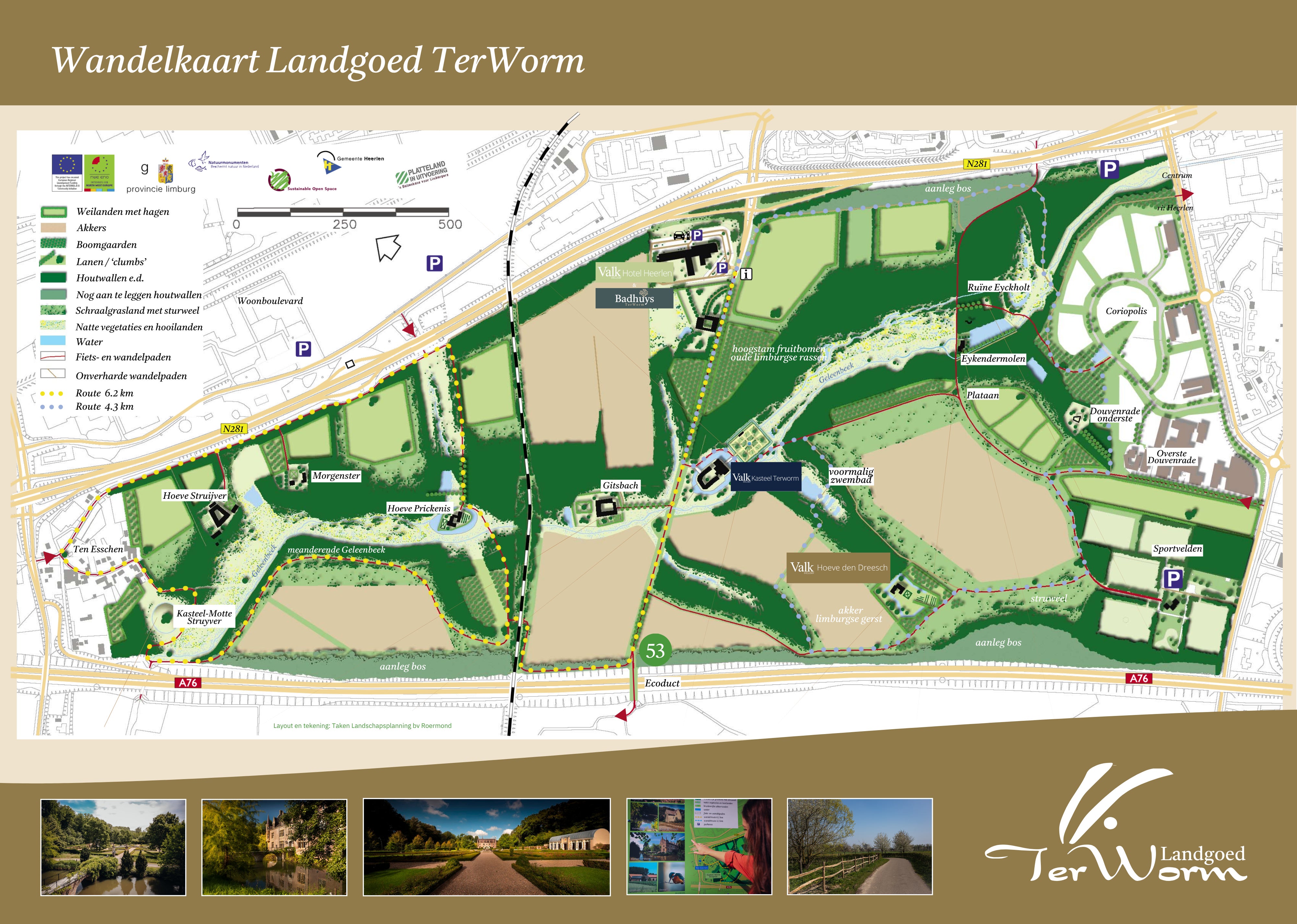Landgoed TerWorm is een prachtig natuurgebied van ruim 200 hectare, waar rust en schoonheid samenkomen. U wandelt hier door een gevarieerd landschap met loofbossen, bloemrijke graslanden, vijvers, boomgaarden en monumentale lanen. In elk seizoen biedt het landgoed een andere sfeer, van bloesem in het voorjaar tot gouden kleuren in de herfst.